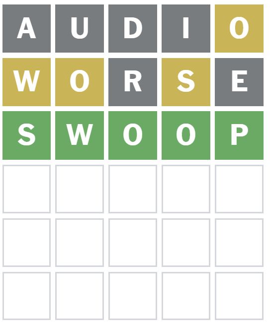 No letters were correctly placed with this guess, but it did show me there is a W and S in the Wordle answer today.