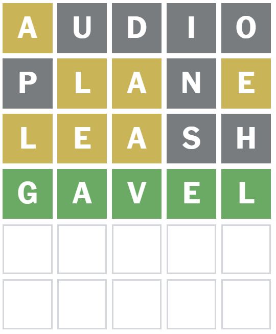 No letters were correctly placed with this guess, but it did show me there is an L and E in the Wordle answer today.