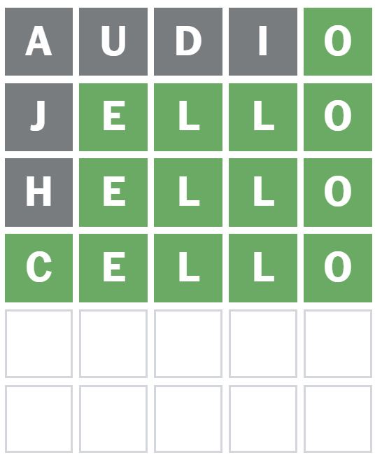 I then guessed the word ‘HELLO’ next, but this is not the Wordle answer today.