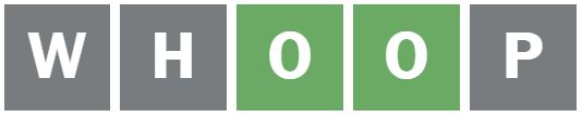 ‘WHOOP’ was the next word I guessed as it uses different letters than the ones previously guessed.