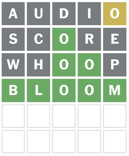 No new letters were shown to be in the Wordle answer today, but it did place the O correctly as the third letter.