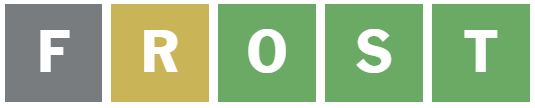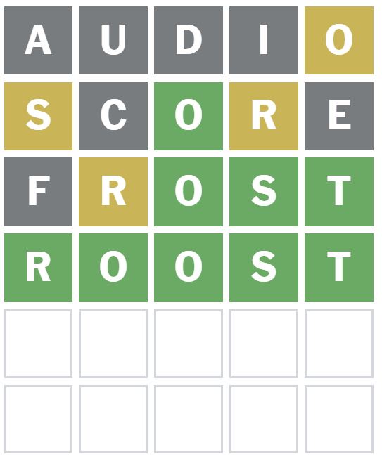 I thought the word would end in ‘ROOST’ so I guessed the word ‘FROST’ next.