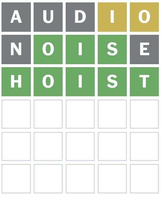 Here is how I managed to solve Wordle 1706 in three guesses today. I guessed the word ‘AUDIO’ first, which is my usual starter word.