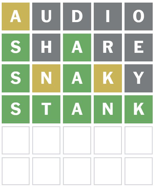 No letters were correctly placed with this guess, but it did show me there is an N and K in the Wordle answer today.
