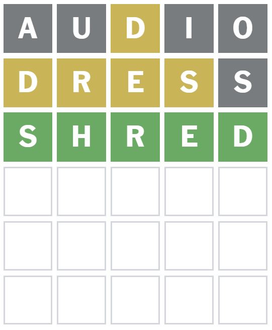 This was a great word to guess as it showed me there is an R, E and S in the Wordle answer today.