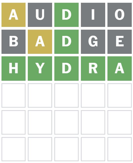 Here is how I managed to solve Wordle 1715 in three guesses today. I guessed the word ‘AUDIO’ first, which is my usual starter word.