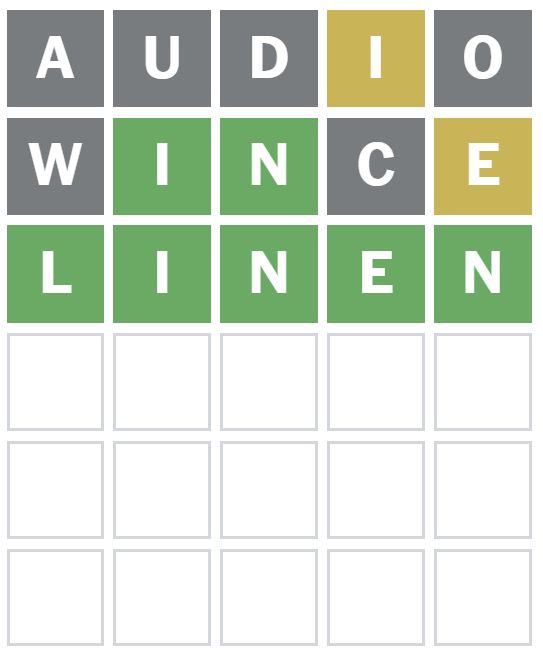 The I and N were correctly placed as the second and third letters and also showed me there is an E in the Wordle answer today.