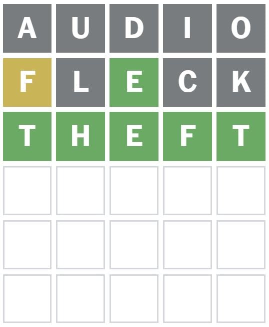 The E was correctly placed as the third letter and it also showed me there is an F in the Wordle answer today, although it isn’t the first letter.