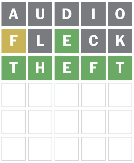 The E was correctly placed as the third letter and it also showed me there is an F in the Wordle answer today, although it isn’t the first letter.