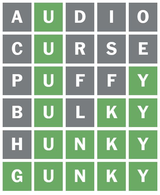 Here is how I managed to solve Wordle 1721 in six guesses today. I guessed the word ‘AUDIO’ first, which is my usual starter word.