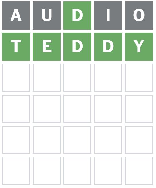 Here is how I managed to solve Wordle 1726 in only two guesses today! I guessed the word ‘AUDIO’ first, which is my usual starter word.