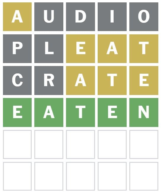‘CRATE’ was the next word I guessed as I thought A would be the third letter and E the last.