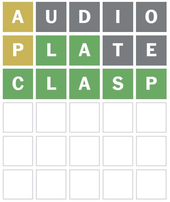 There were two words I thought of to guess next, one of which was ‘CLAMP’, but I decided to go with the other one.