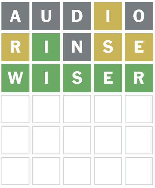 Here is how I managed to solve Wordle 1740 in three guesses today. I guessed the word ‘AUDIO’ first, which is my usual starter word.