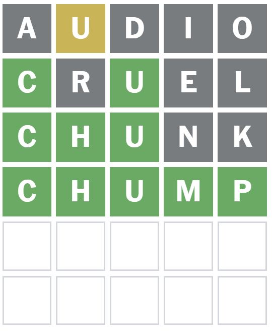Here is how I managed to solve Wordle 1744 in four guesses today. I guessed the word ‘AUDIO’ first, which is my usual starter word.