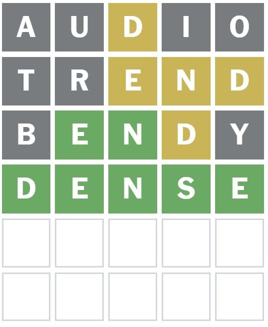 I then wanted to guess a word that puts the D in a different position and has an E in it, so I guessed the word ‘TREND’ next.
